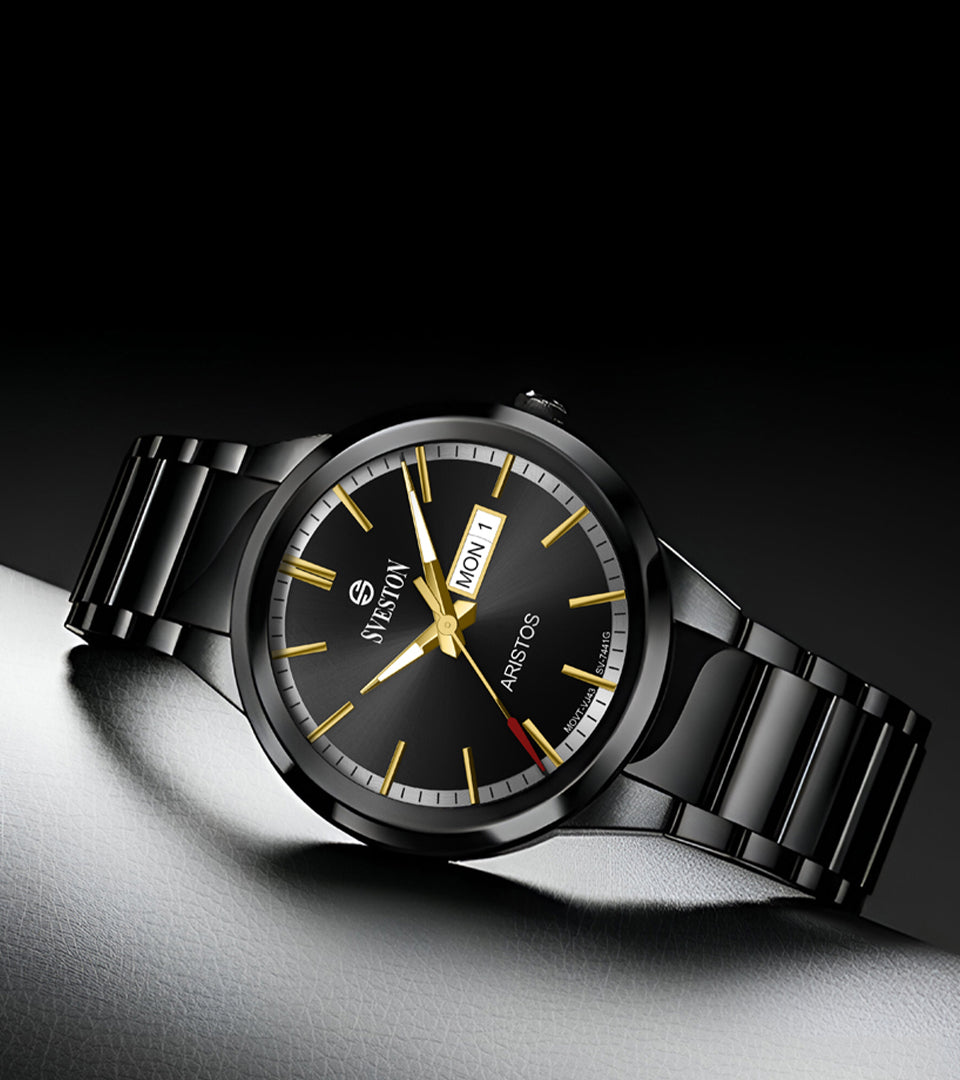 With a stainless-steel profile, 3ATM water resistance, and the precision of Japanese Quartz movement, Aristos is engineered for everyday reliability without losing its edge.