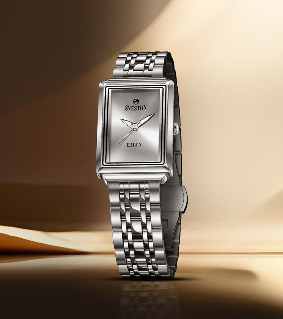 If this silhouette feels familiar, it’s because rectangular watches have been icons of elegance for decades. Lilly brings that vintage charm into the present, refined with a polished finish and bracelet links that wear like jewelry. A classic made modern, designed to outlast every trend.
